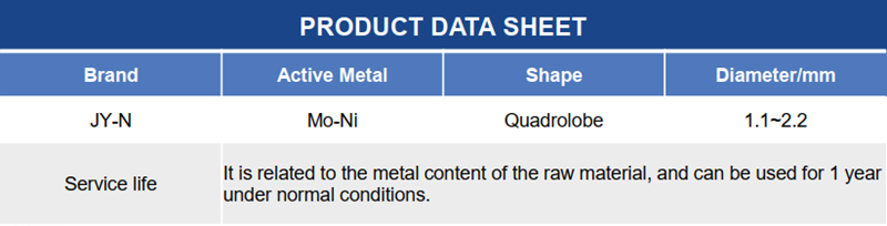 JY-N catalyst is a heavy oil hydrogenation denitrification catalyst . It is suitable for the hydrotreating process of heavy oil and other inferior distillate oil, and its main function is to deeply remove sulfur and carbon residue in raw oil and moderate hydroconversion.